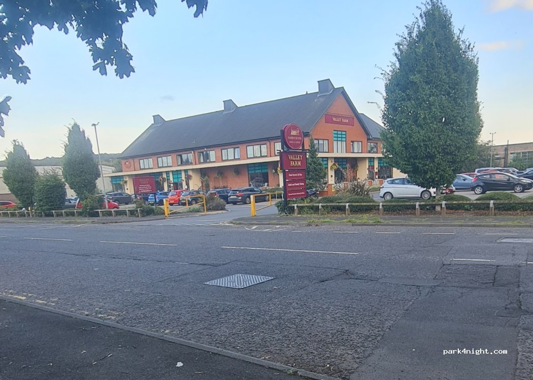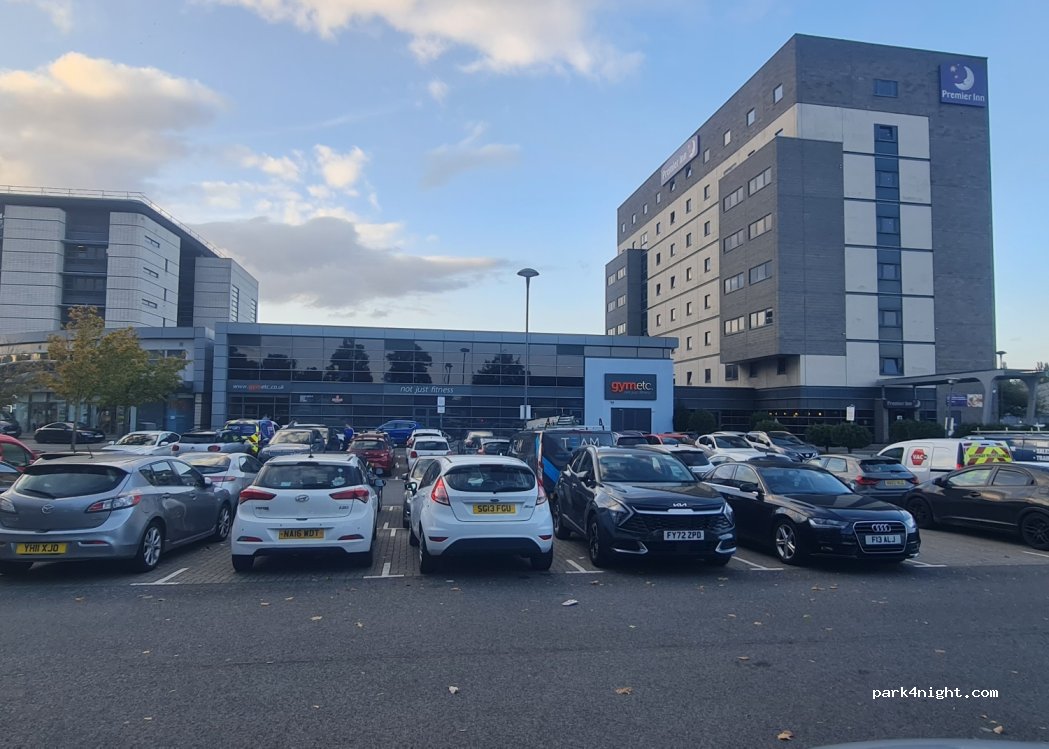 Street parking day night next hotel gym and restaurant. gym etc paying £15 you can use spa sauna swimming pool gym breakfeast 6.99 in valey farm infront