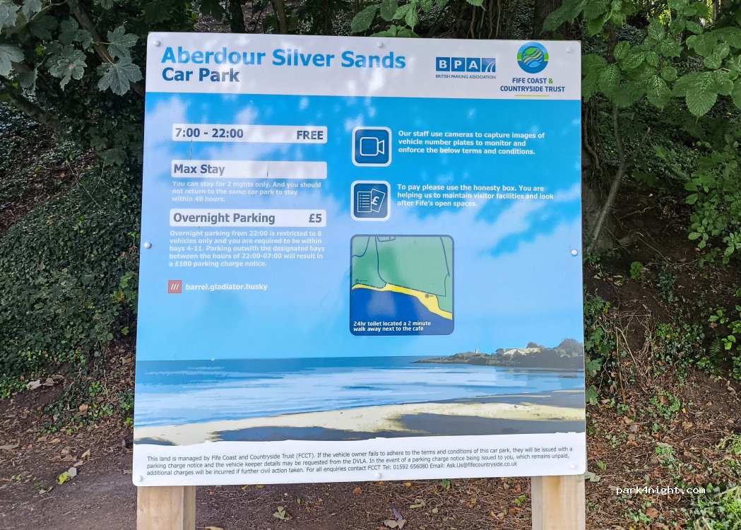 Lovely spot, toilets closed at night . A bit noisy tonight because of youngsters having a bbq next to us with music ! But it’s ok at the moment. Location is beautiful view of the sandy beach and sea . Plenty walks for the dog. Cycling route to Burntisland from behind the cafe where there is a lovely bakery with fresh croissants and sourdough bread! Perfect for a night sleep. Donation of £5 is asked if staying the night.