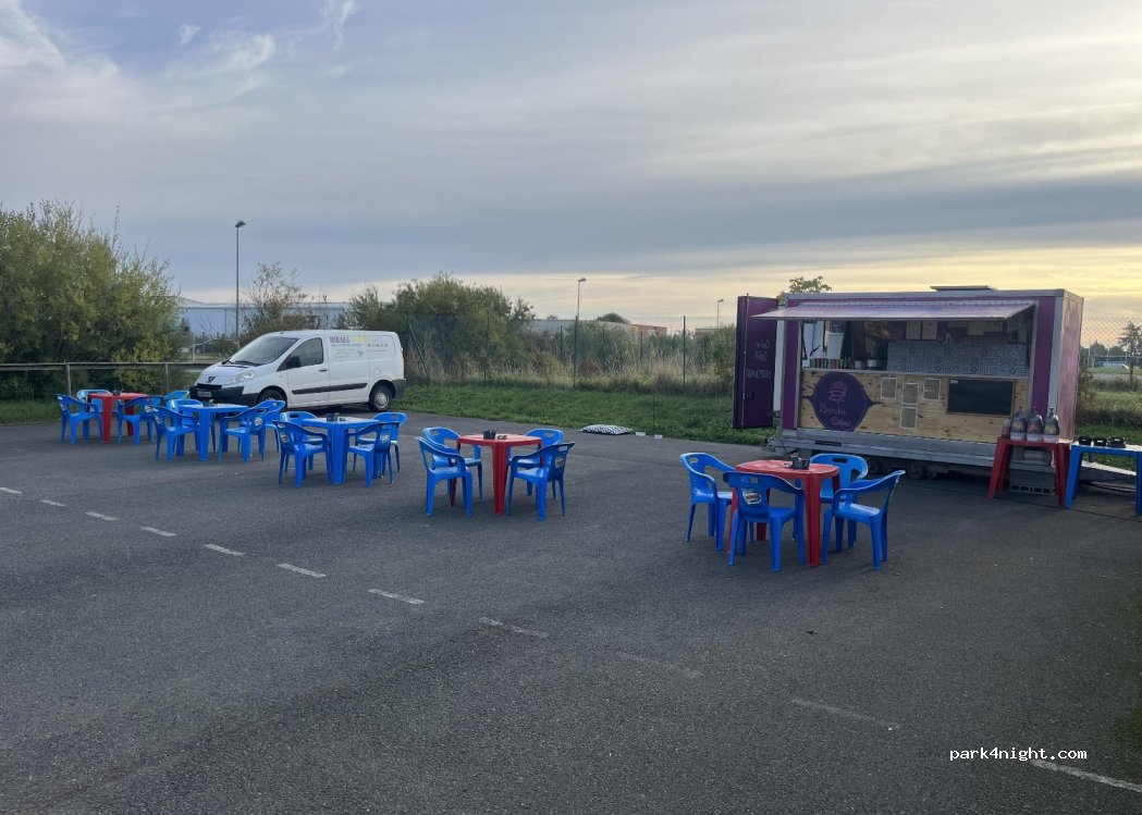 Plusieurs places disponibles derrière Loudun lavage . Des tables de pic nic sont à disposition , un snack est ouvert sur place en semaine de 10h à 15h30 .
