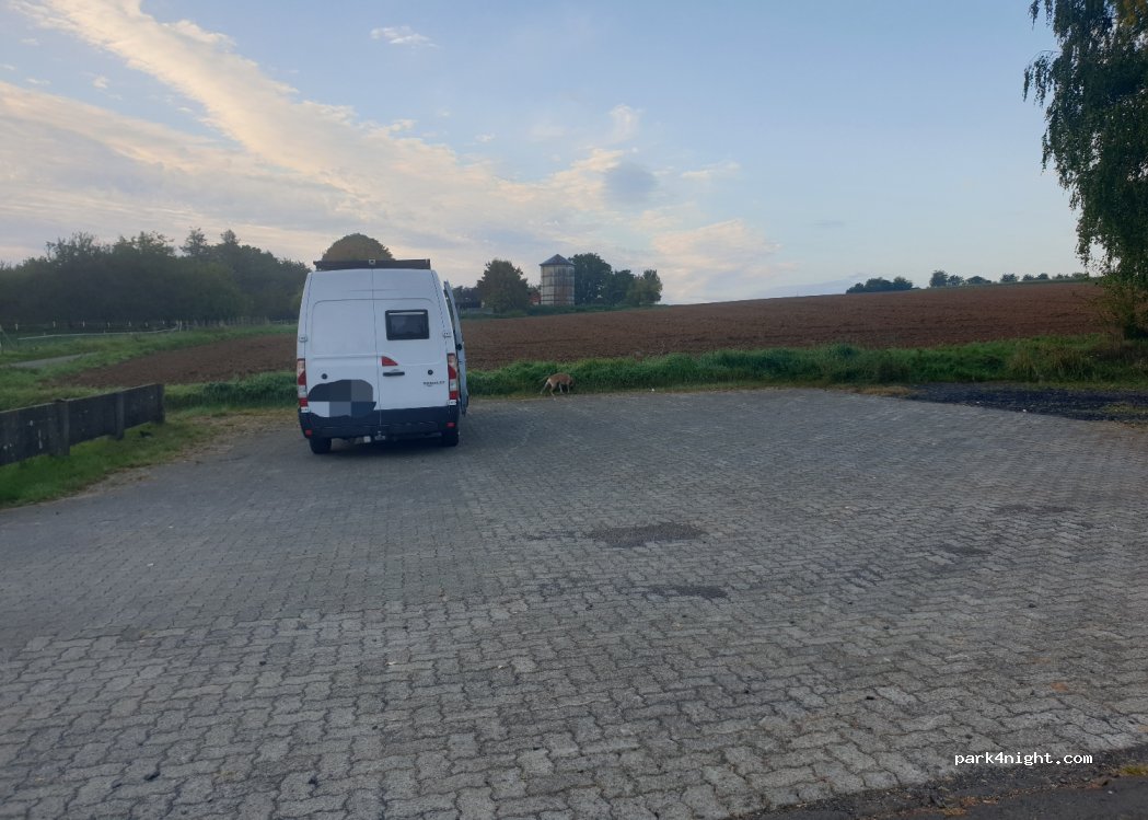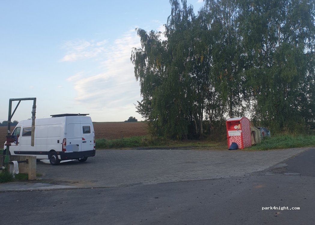 Petite place à côté du cimetière de Cassdorf. Nous avons pu rester ici sans aucun problème et passer une nuit tranquille. Le matin, il y avait du trafic et un ou deux piétons. Il y a suffisamment d'espace pour que vous puissiez vous tenir correctement et vous assurer que vous vous tenez droit. Il y a un chemin dans la campagne directement entre le parking et le cimetière, parfait pour une belle promenade (avec le chien) après un long voyage.