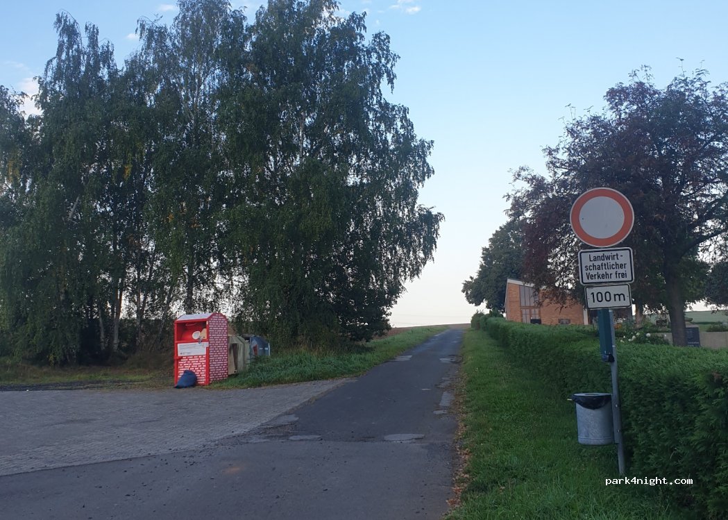 Pequeña plaza junto al cementerio de Cassdorf. Pudimos quedarnos aquí sin ningún problema y pasar una noche tranquila. Por la mañana había tráfico y uno o dos peatones. Hay suficiente espacio para que usted se pare correctamente y asegúrese de estar erguido. Justo entre el aparcamiento y el cementerio hay un sendero en el campo, perfecto para un agradable paseo (con el perro) después de un largo viaje.