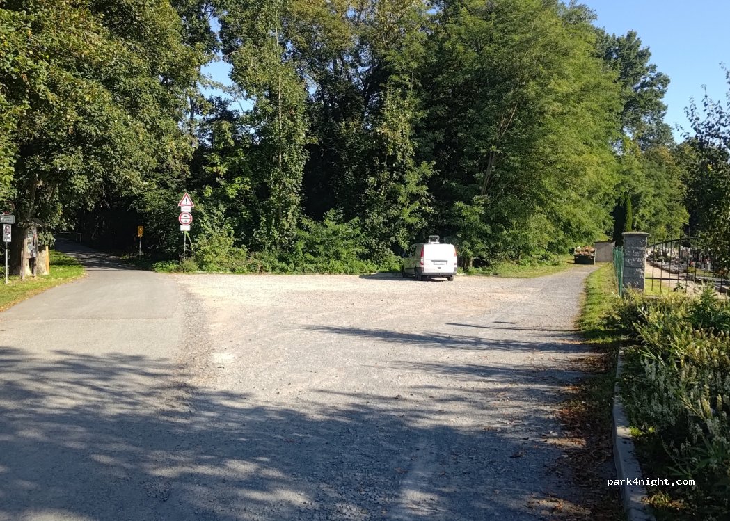 Parking lot between the cemetery and the kindergarten. The parking lot is located next to the cycle route from Olomouc to Litovel. It is a good starting point for a nice bike trip to Litovel or Olomouc through the nature reserve. Absolute peace at night on the weekend, on weekdays the kindergarten staff arrive at 6:00 a.m. The cemetery is lit all night.