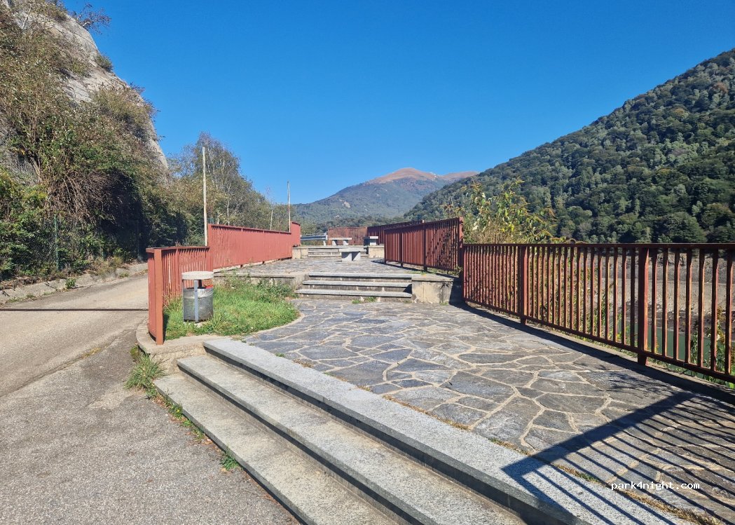 Spazio per 2 veicoli direttamente sulla strada. C'è poco traffico sulla strada, per niente di notte. I posti sono leggermente in pendenza, si consigliano cunei carrabili.