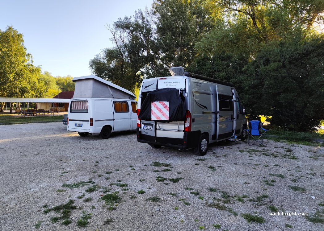 Super parking vraiment tranquille. Parfait pour la baignade dans le lac Balaton, avec un square pour enfants juste à côté. De bonnes pizzas pas chères au restaurant. Des trains passent toutes les heures même la nuit, mais ils ne nous ont pas du tout gênés!