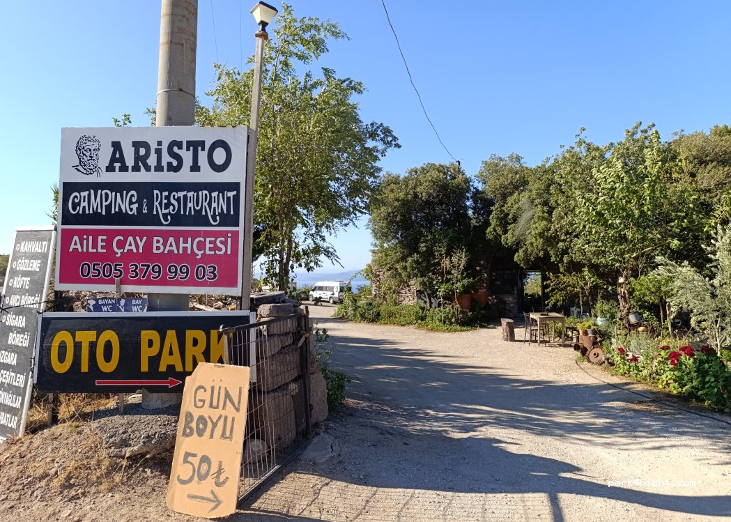 Bij de ingang staat een bord met 'OTOPARK', er zijn echter mooie lokaties voor campers, schone toiletten en douches. Prachtig uitzicht op eiland Lesbos en de stadsmuren van Assos. Er is een restaurant op het terrein, vriendelijke ontvangst. Men spreekt enkel Turks.