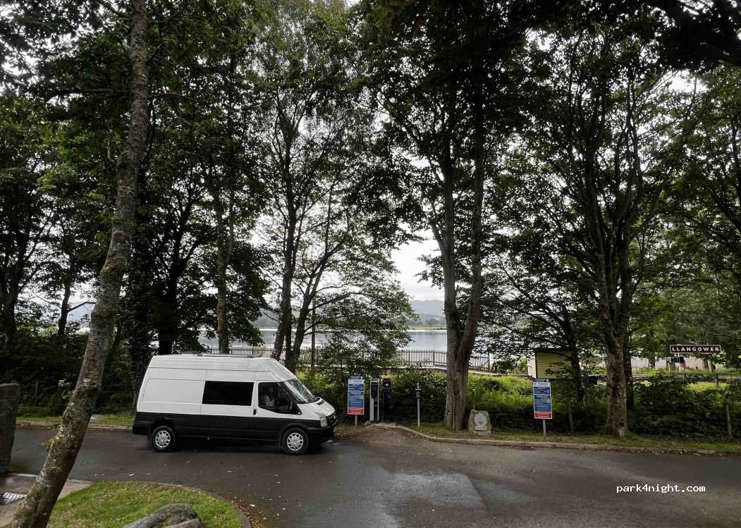 Nice car park at Llangower station. Public toilets available and access to the lake. It was free when we were there, but in peak season it can cost a small fee.