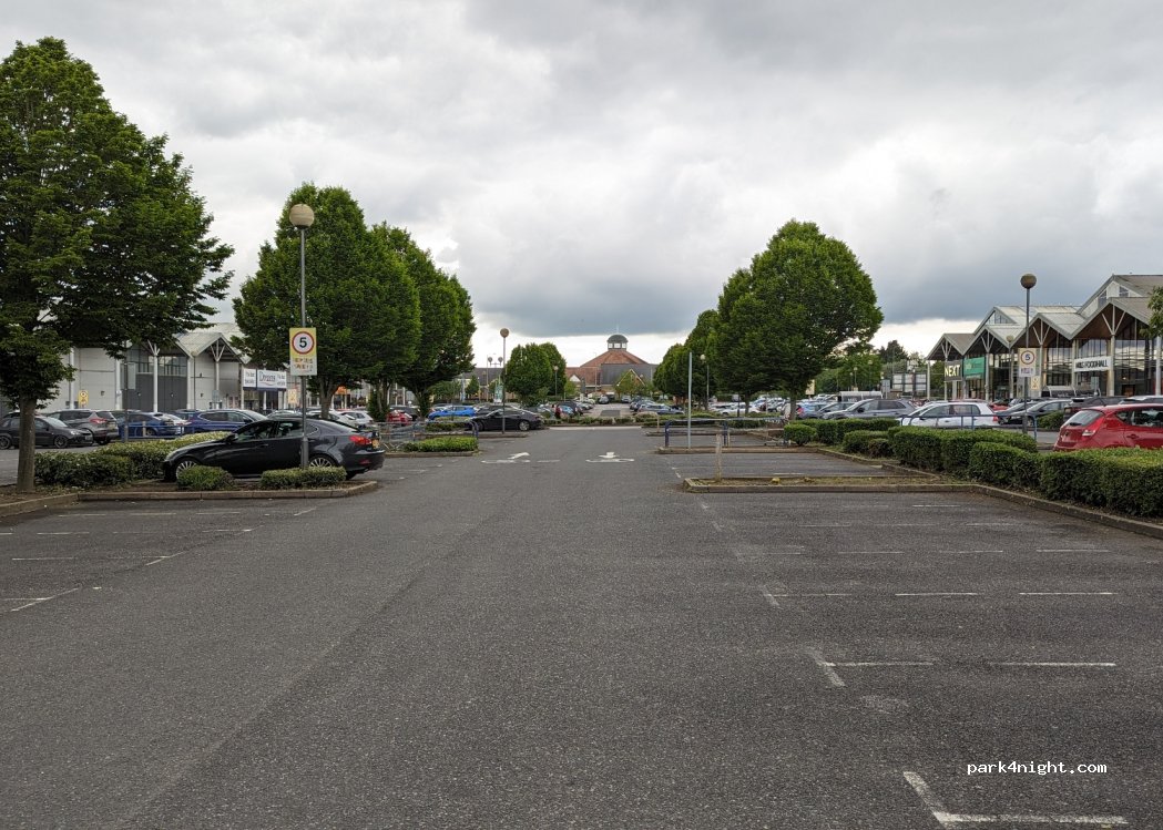 Massive flat car park on a retail park. Important: This car park has no restrictions, the car park next door (for Braintree shopping village) has a 6 hour limit so make sure you park on the B&Q side.