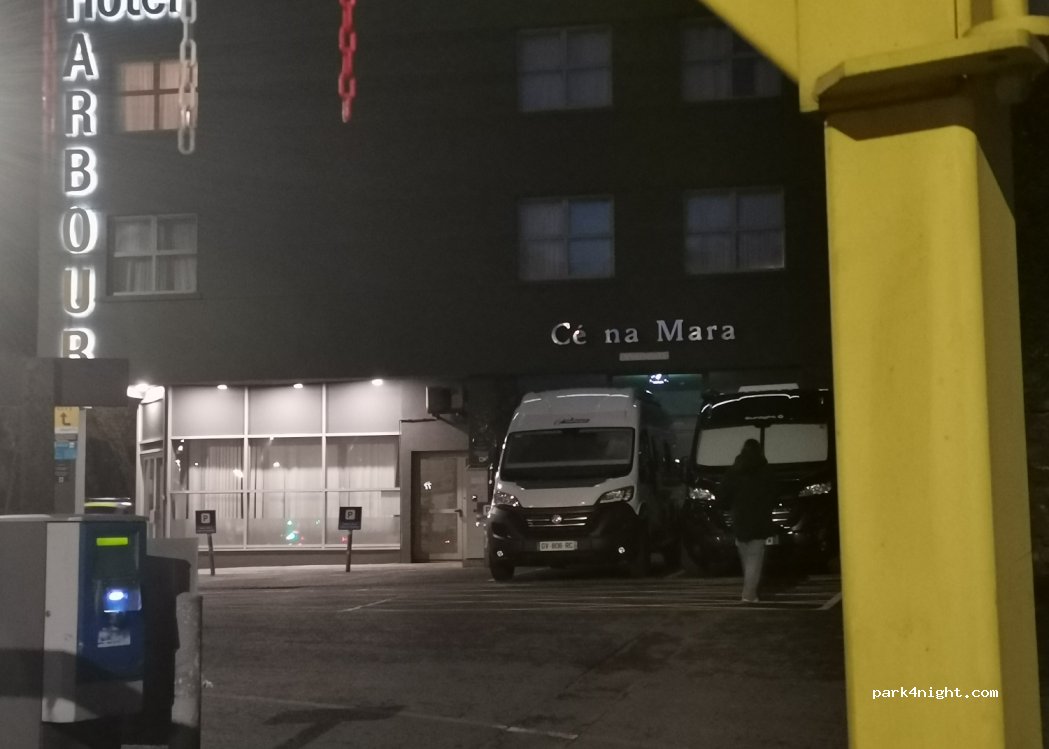 Only 5 spaces, expensive to park over night but very good location and we didn’t mind spending 40 euros between us as we had a big drive down and needed to just stop and get settled for the night, very safe place although you think is it when you arrive but yes, only issue is very nosey all during the night with traffic. However worth a shot!