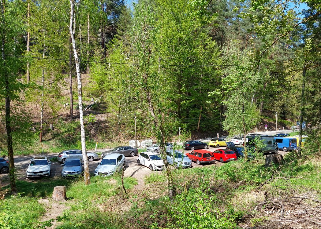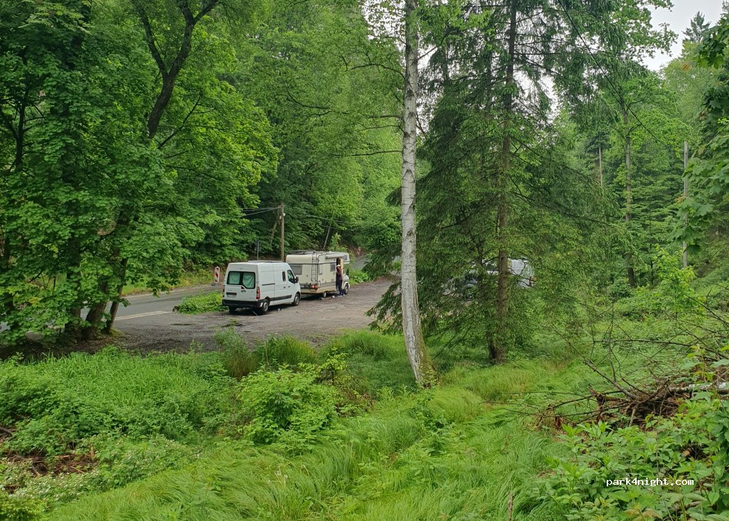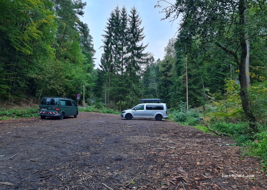 Good place for hiking up to Schrammsteinaussicht, we arrived about 5:30pm and hiked up for sunset would recommend. Stayed the night no issue, busy with hikers in the day but peaceful night. Not suitable for bigger vehicles, unpaved so would be muddy after rain.