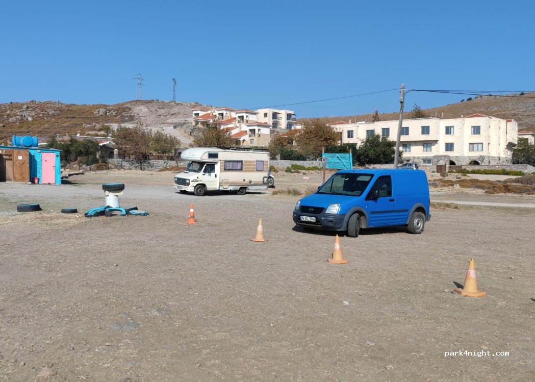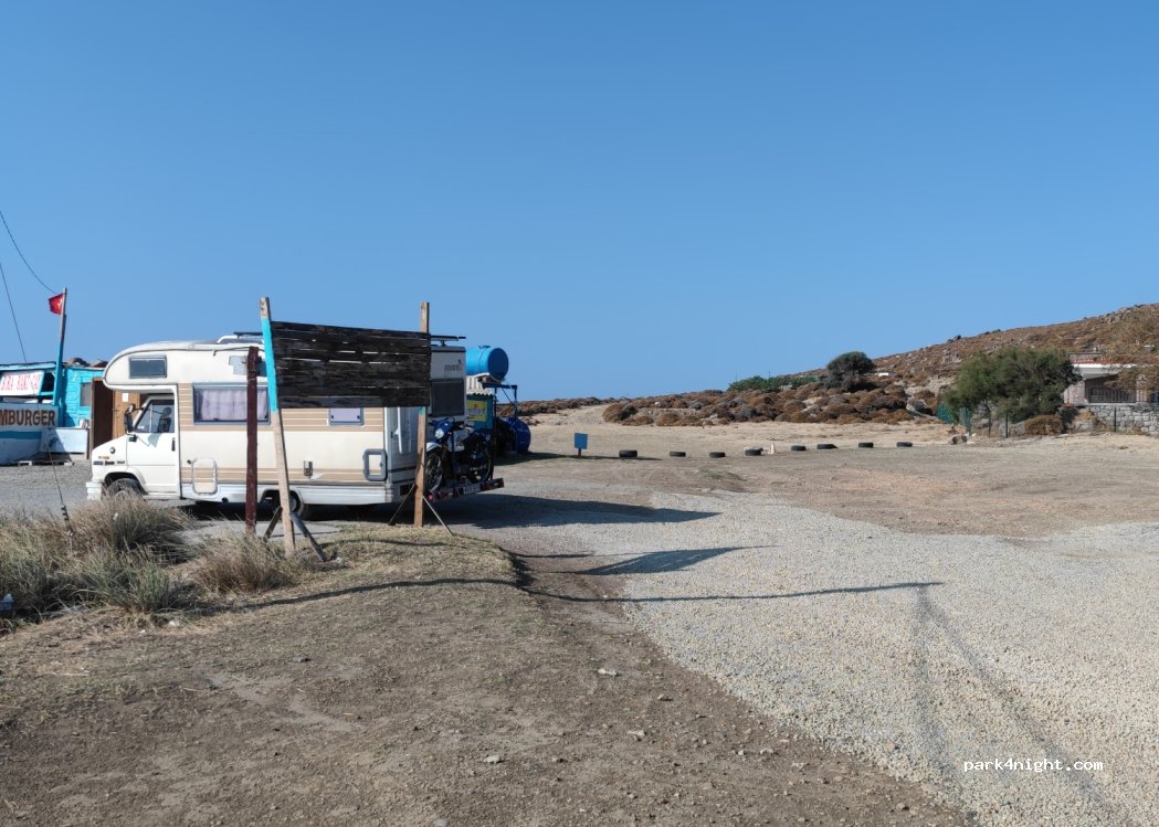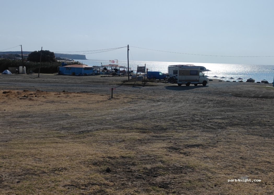 A large park place, next to beach, with a small beach bar. Working water tap, and public toilets, You can see on the second photo. Windy place, excellent for kite and wind surfing. In extra season, no traffic, quiet and peace.