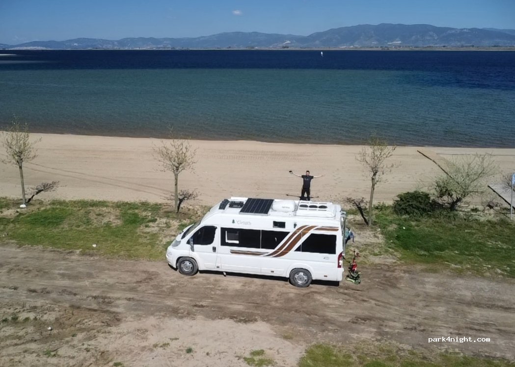 Un spot sympa à côté de la plage peu profonde avec quelques camping-cars, nuits tranquilles. Ferry vers et depuis Thasos à proximité. C'est peut-être un endroit toléré pour un séjour hors saison car le camp voisin est fermé. Marcher quelques minutes jusqu'à Keramoti et le(s) restaurant(s). Toute la péninsule est entourée d'une plage de sable fin.