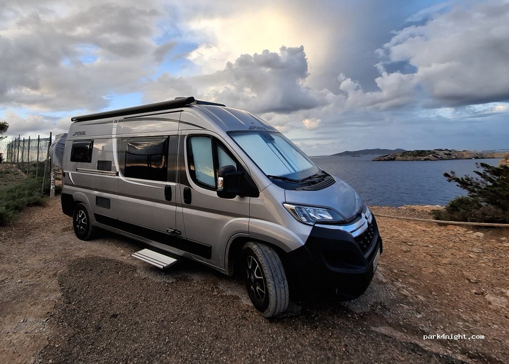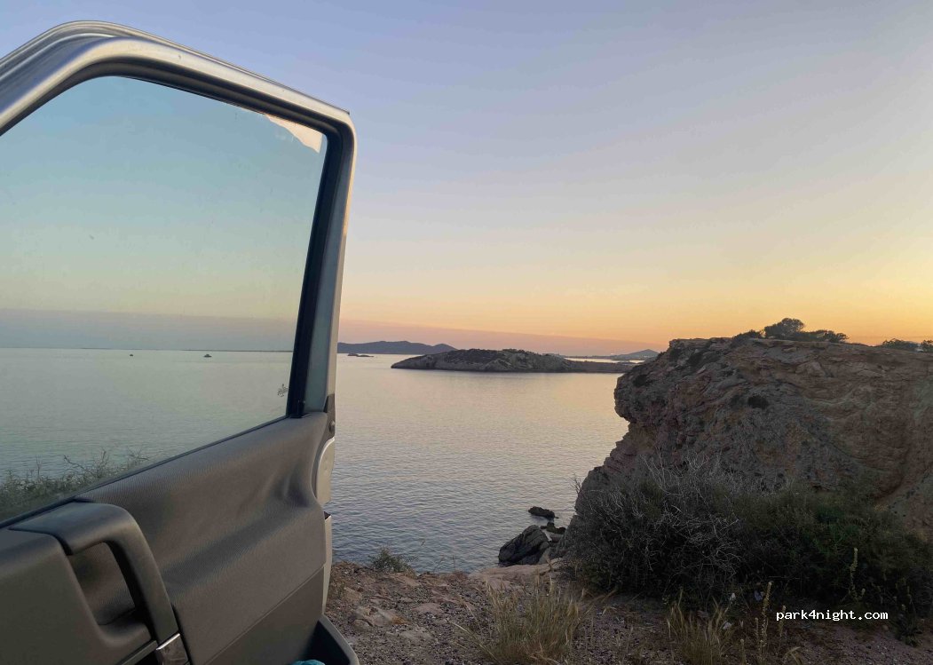 Franchement au top a 10 mn du port. Vue sur la baie. On s est garé juste au mirador en haut. Accessible sans problème. Qq vans pendant la nuit. Coucher de soleil incroyable . Calme . Des employés municipaux passent le matin ramasser les détritus, merci de garder propre!
