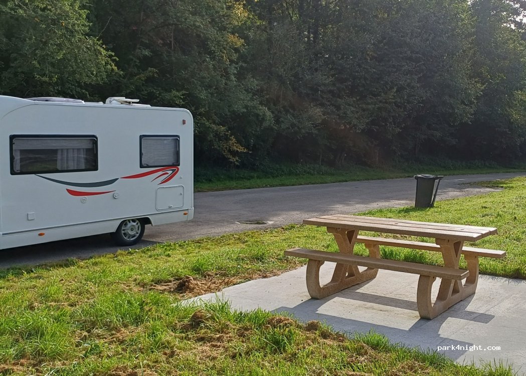 Waste water disposal near the sanitary facilities. Small playground. Domestic electricity connection.