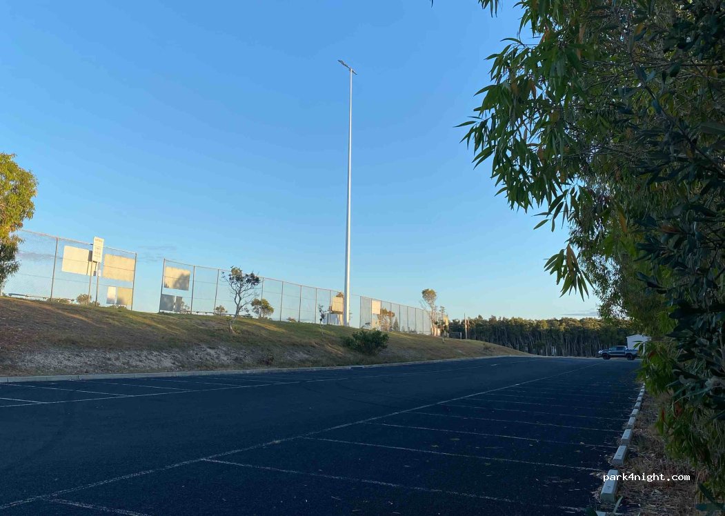 Amplio aparcamiento detrás de algunos campos deportivos. Muy tranquilo aparte del sonido de las olas. Pequeño grifo cerca de los campos deportivos para un poco de agua también y buen servicio.