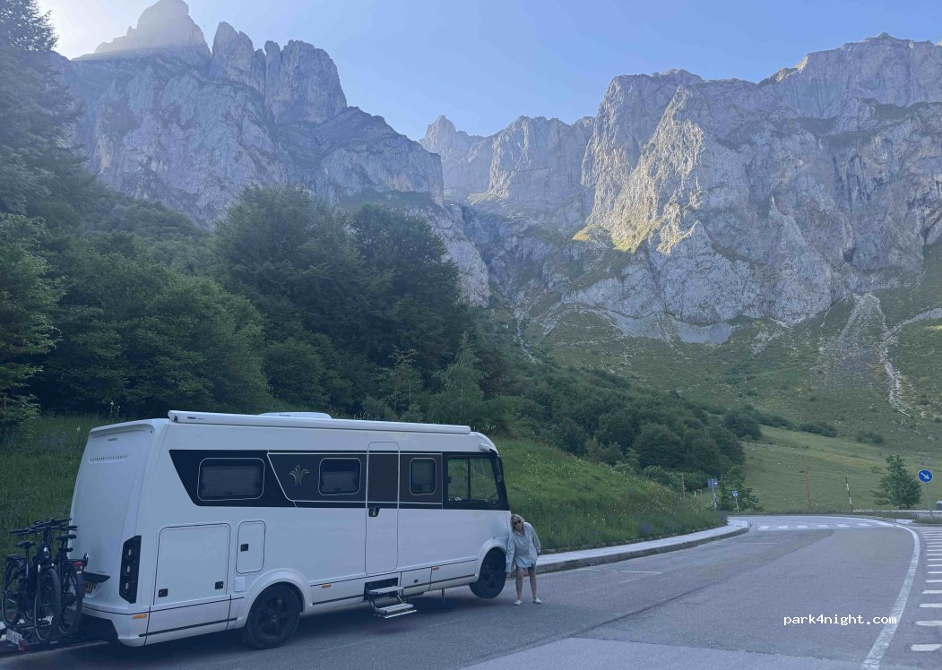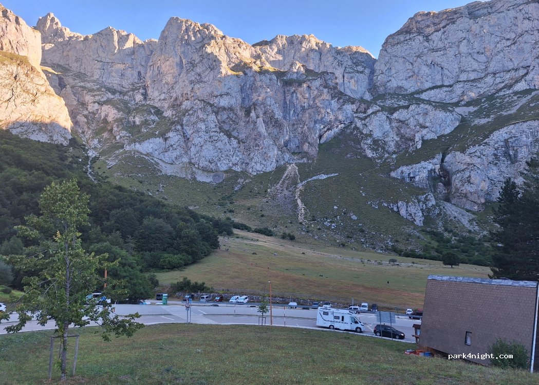 Parking idéal pour visiter picos d’Europa avec le téléphérique ,17€ aller retour par personne, 5€ pour un petit chien seulement en sac à chien fermé , là haut il est possible de se rendre au refuge à 4 km