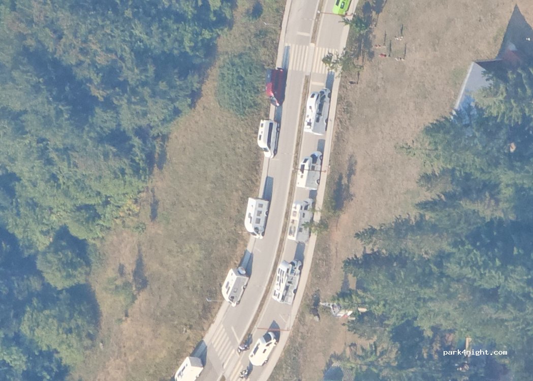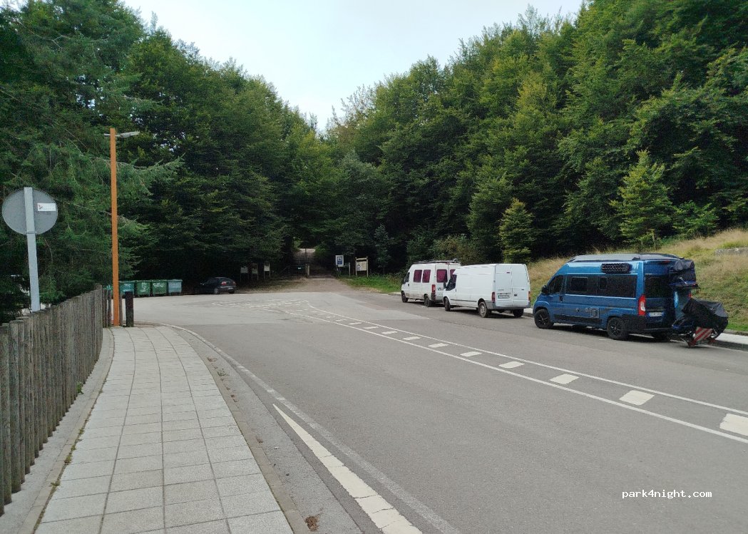 Les camping-cars et les bus peuvent être garés sur le chemin qui monte au camping et en même temps dans des impasses pour faire demi-tour aux bus, les places sont balisées, environ 20 au total, le parking visiteurs, uniquement pour les voitures et avec une hauteur barrière.