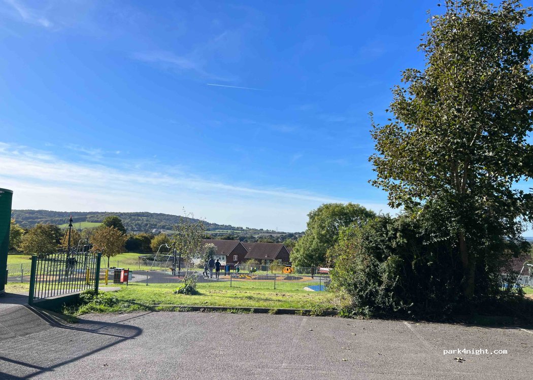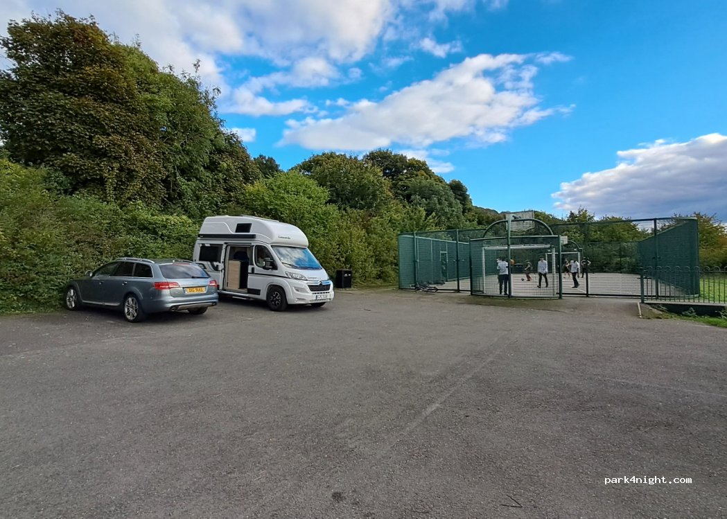 Small car park in a residential area, next to kids’ playground and basketball court. Locals use it for parking cars and vans that don’t fit on their drives. Bit of late evening noise from teenagers being teenagers but totally quiet after pubs close. Lovely views across the valley, and handy for wendover woods. Pubs etc about a 15 minute walk away.