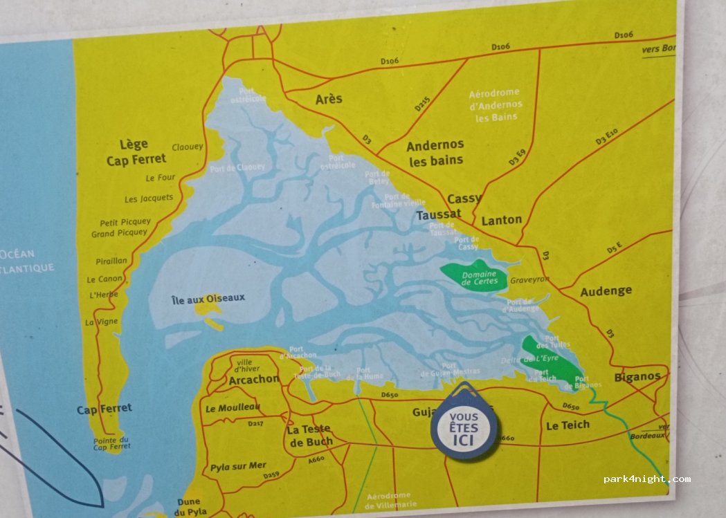 Endroit calme à cette période. Pratique pour la nuit. A 20 mns, de la Dune du Pilat en voiture.