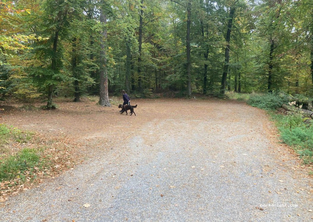 Parking forestier sur route peu fréquentée la nuit. Espace pour 2-3.
