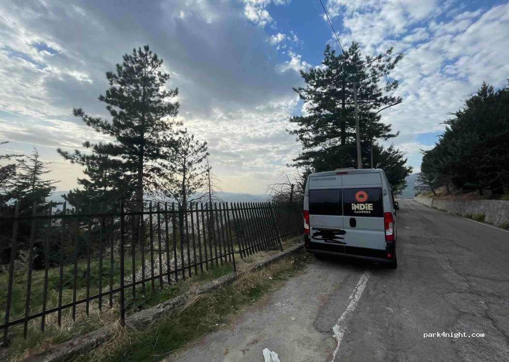 Parking space on the side of a road next to one of the most beautiful villages in Sicily. Petralia soprana. A must see. On the other hand, the interior of the city is difficult to access for campers and vans.
