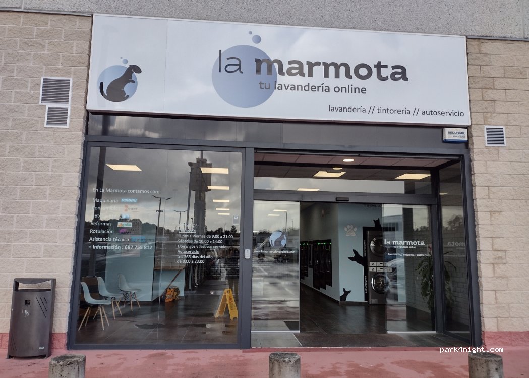 Lavandería en el parque comercial, con gran aparcamiento.