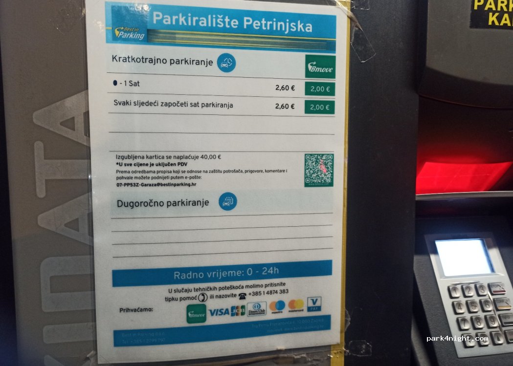 Paid parking lot in the immediate vicinity of the old town of Zagreb. It's narrow and expensive, but Croatians park their expensive cars here. Video surveillance available. But it feels safe.
