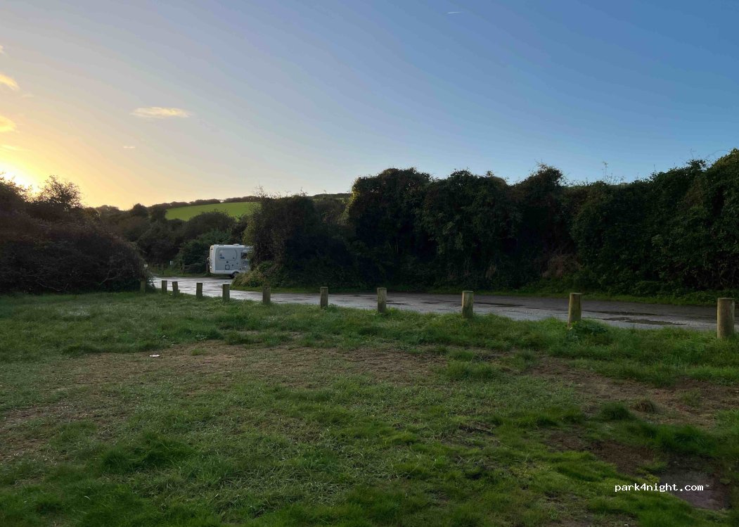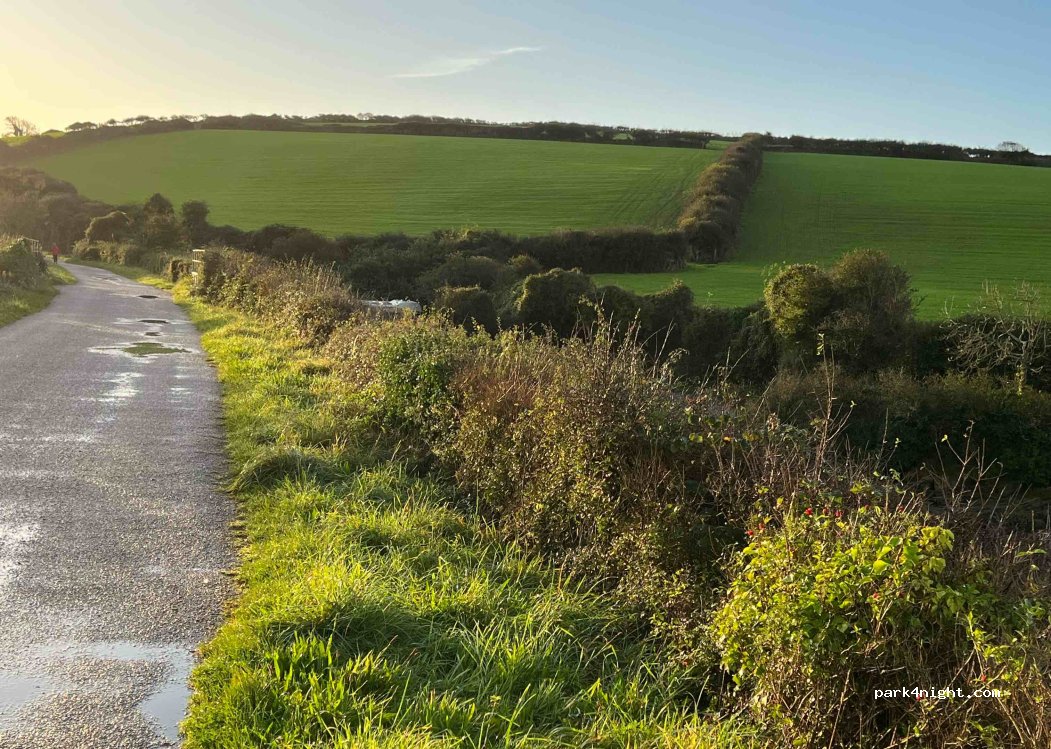 Brilliant quiet spot right on the camel trail. 1.5m to Padstow in one direction and 4 miles to Wadebridge in the other. One other van overnight, no issues. No bins or facilities so be self contained. Not suitable for large RVs, LWB transit size at a max.