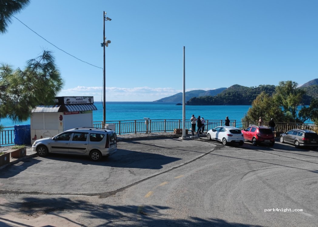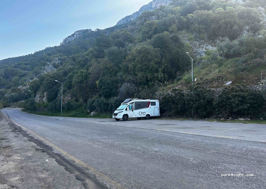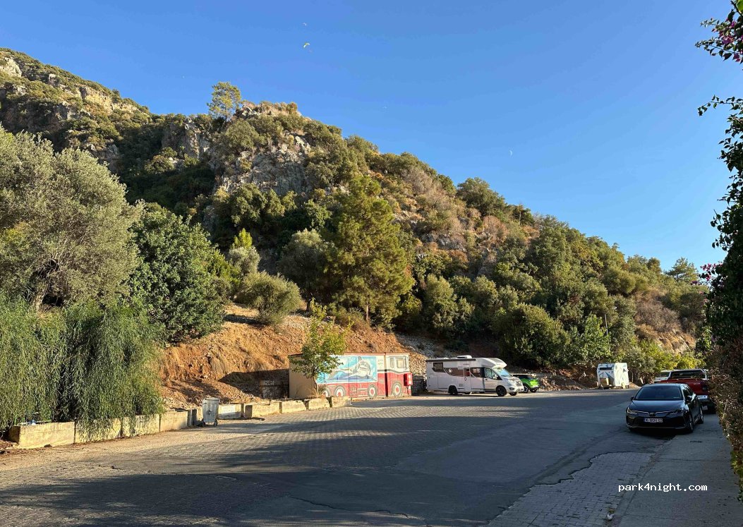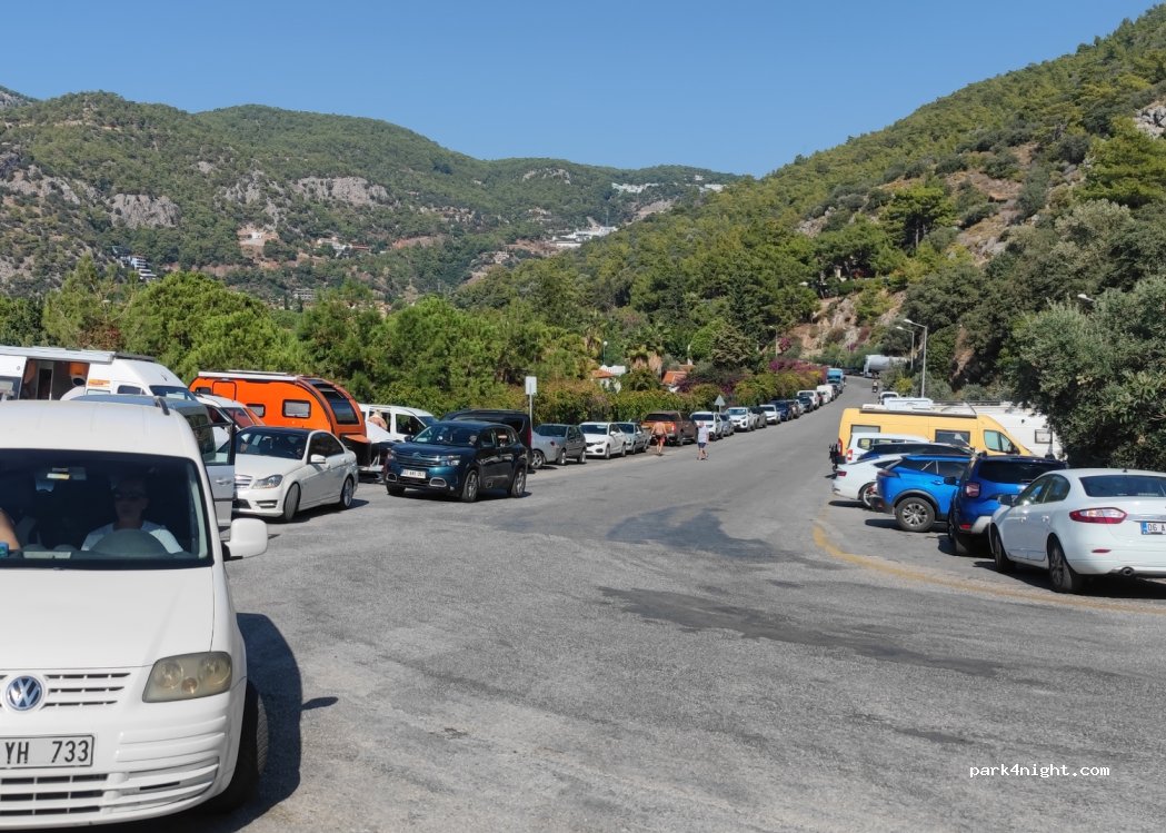 Anche lungo la strada prima dei tornanti vicino al resort oludeniz hotel, sosta notturna tollerata. Strada molto trafficata e rumorosa anche di notte. Per trovare posto arrivare prestissimo (poco dopo alba altrimenti la coda per entrare arriva fino ad oleudeniz paese alto) oppure al tramonto. Bella spiaggia a pochi metri con docce e bagni gratuiti.
