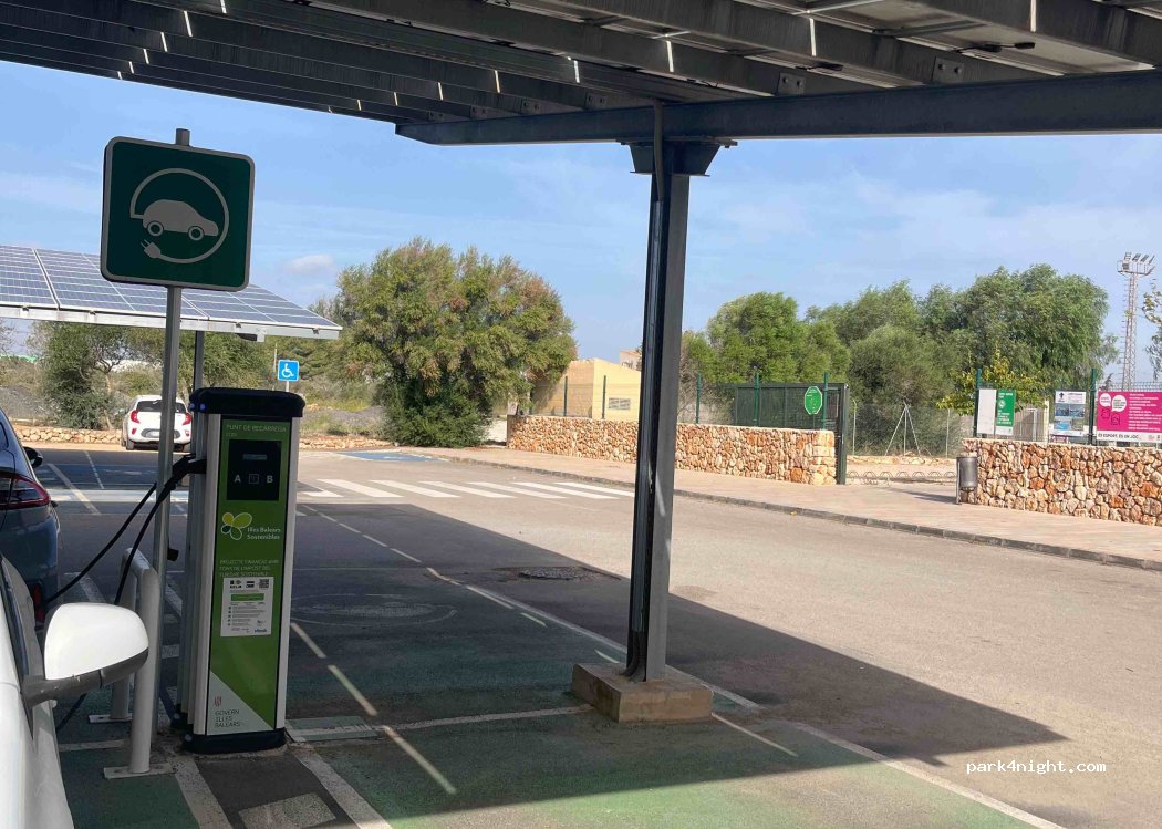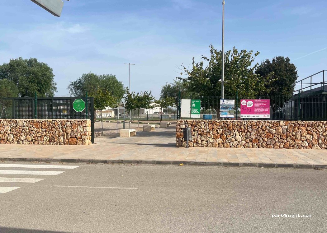 Magnificent place to spend the night. It is the public parking lot of the municipal gym/pool. You can do sports and shower right there for a minimal amount. Nearby are all the supermarkets, a gas station where you can also hose down (I usually open the gray tap in the meantime) and the Green Recycling Point next door. Campos is very close to the most beautiful beaches on the island. Easy to move from here to Santany, Rapita, Salines, Colonia de Sant Jordi. We have spent 3 nights in peace and silence. There is a high roof and electric charging for vehicles.