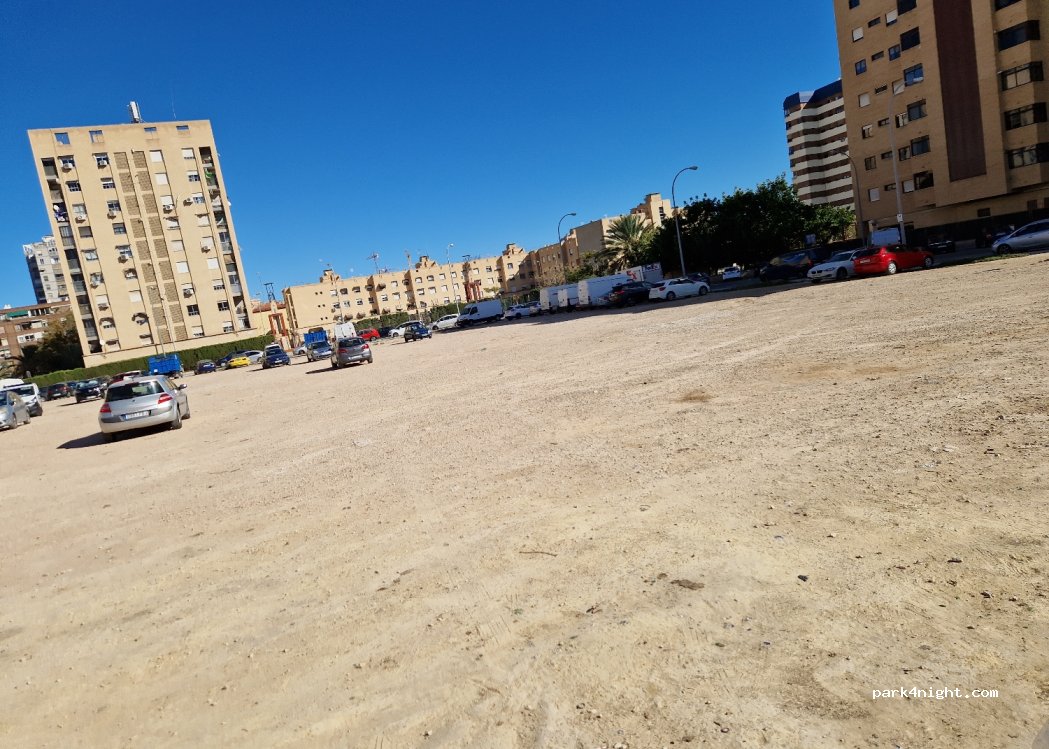 Es, simplemente, un espacio vacío en el que aún no han construido. Algunos vecinos aparcan allí sus coches, pero no hay ningún servicio de nada ni la zona tiene ningún interés. Hay espacio para vehículos de cualquier longitud, como se ve en las fotos. Las vistas son torres de apartamentos y un instituto.