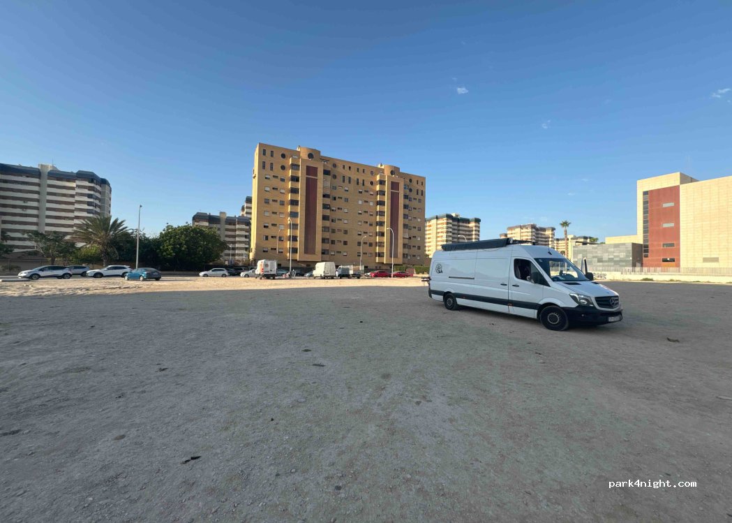 Es un lugar ideal para visitar el centro de Alicante, a tan solo 20 minutos caminando. Casi siempre hay espacio para aparcar. Si llegáis por la tarde-noche casi seguro que encontraréis sitio. Los jueves hay mercadillo así que no os recomendamos meteros si llegáis por la mañana. Nosotros lo hicimos y parecía una ratonera, casi no podíamos salir. Por la noche es seguro y tranquilo.