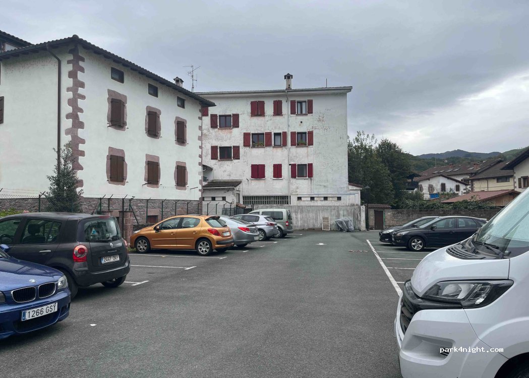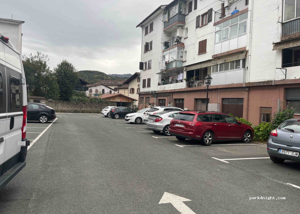Central location in Elizondo. We parked to visit the town, but I think it would be no problem to spend the night. The size of the places is for cars, but with a 6m van, we parked in the middle without problems.