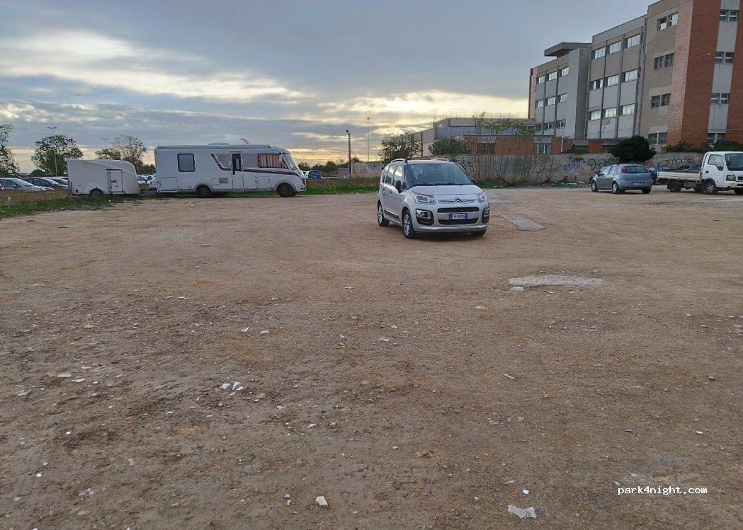 Very large free tar and dirt car park, 3 kilometers from the center and the ferry departure. access to large motorhomes even with trailers. several other large parking lots around. not very clean and noisy but great for a night while waiting for the ferry.