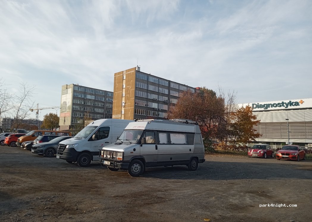 Big patch of hard ground in the middle of living area. Can be busy but safe and free, good for a day or two if you want to hang around city centre, no problem with overnight parking.