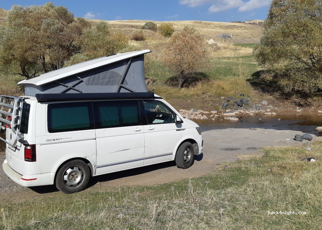 Lugar para 2-3 furgonetas junto al río.