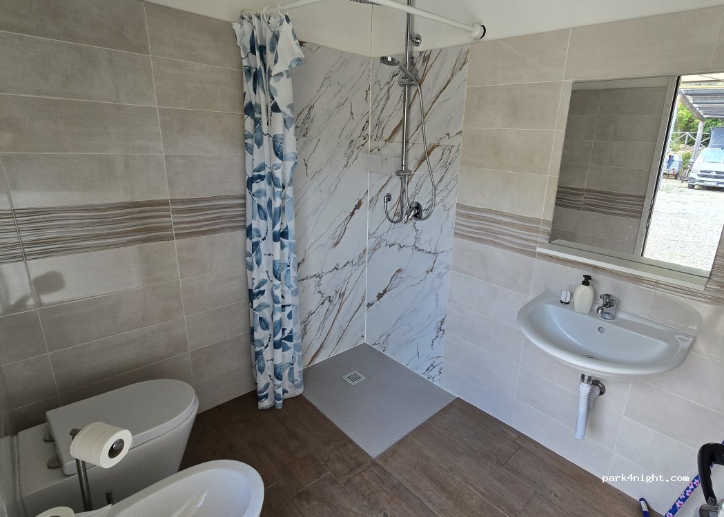 Very positive experience! Pitches new, flat, gravel, big enough, electricity included. Grey and black water disposal. Washing dishes and water available. New toilet and shower. Dinner was very good value for money. It was a privilege to eat with the owners and hear inside stories and tips for Sardinia. The owners did their best to make us feel comfortable. We wish them all best for the future!