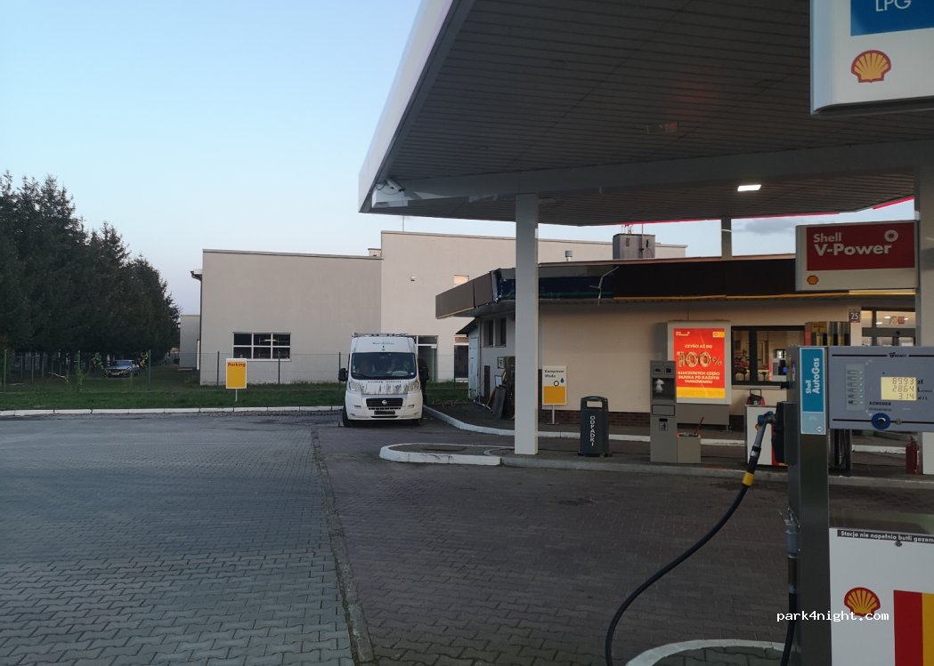 Wassernachfüllung an der Shell-Tankstelle möglich. Der Wasserhahn mit Schraubgewinde befindet sich hinter dem Gebäude.