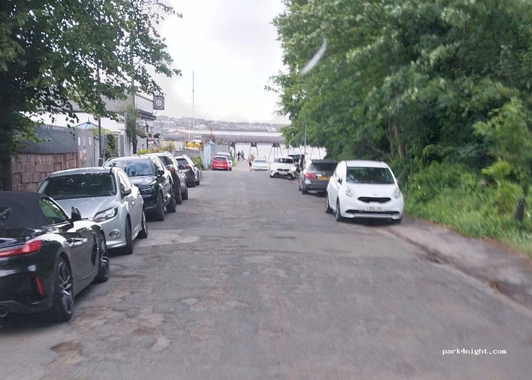 Quiet dead end street overlooking the Mersey no restrictions, no houses with space for 4 big vans.