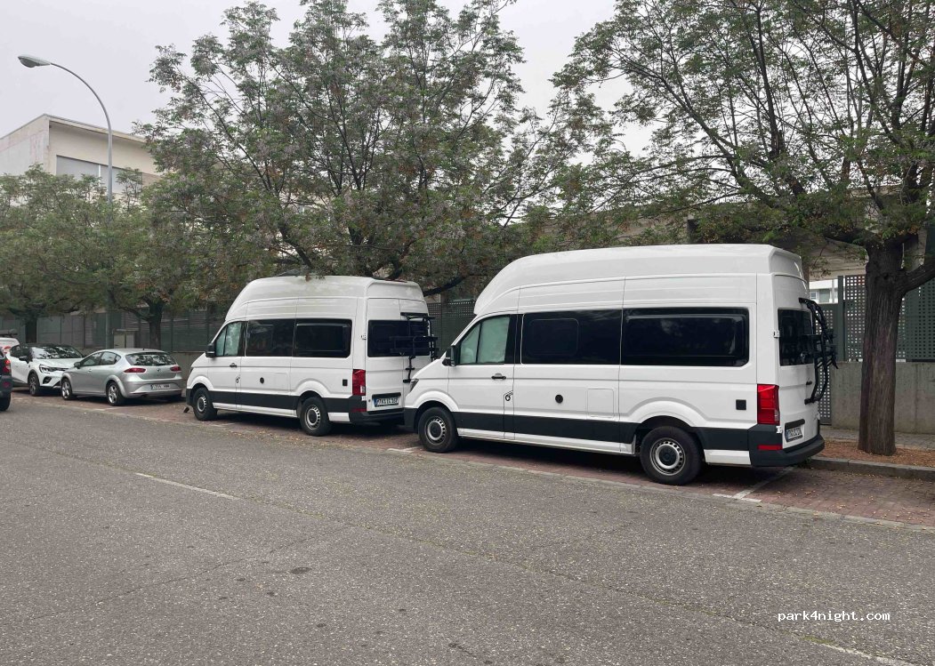 Aparcamiento lineal para vehículos largos y anchos, zona tranquila y sin tráfico