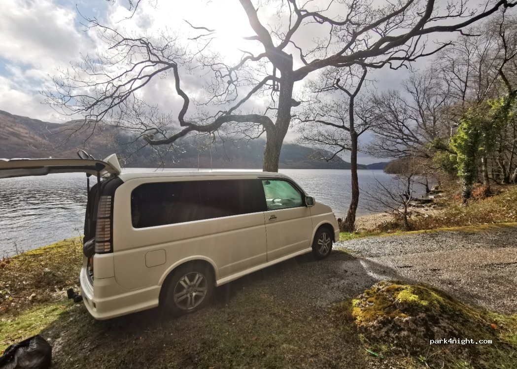Pas de niveau et convient uniquement aux 4x4 ou aux petits camping-cars. Vue parfaite sur le Loch Lomond. À côté d'une route très fréquentée donc bruyante.