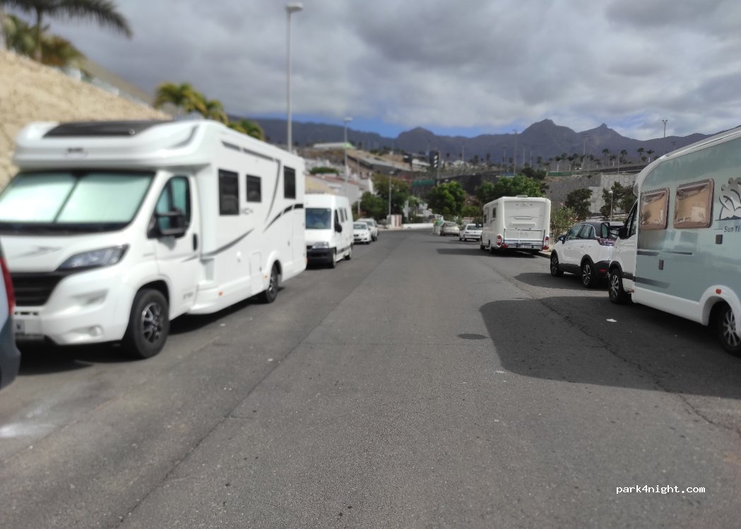 Parken auf der Straße, nur einen kurzen Spaziergang vom Zentrum von La Caleta und damit vom Strand entfernt. Sehr ruhig und in der Nähe von Mülleimern.
