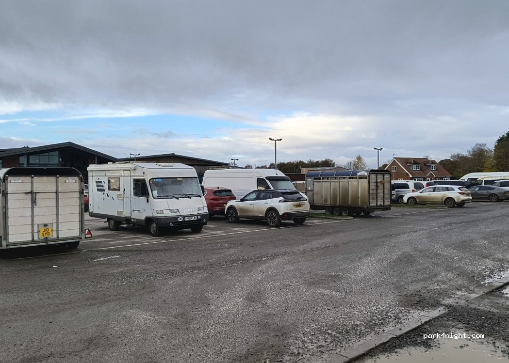 Big car park with plenty of space, we stayed on a Saturday night and found it to be very quiet. Cafe closed on a Sunday.