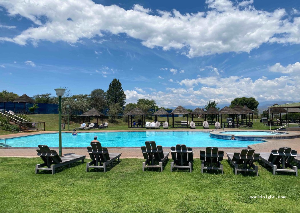 ATKV Drakensville. Camping de 70 emplacements sur un plateau en pierre avec braai, eau, électricité et poubelle. Nombreux endroits ombragés. Nettoyer les blocs sanitaires. Boutique et restaurant. Trois grandes piscines, volley, trampolines, mini golf. Chapelle. Écuries. Wifi gratuit.