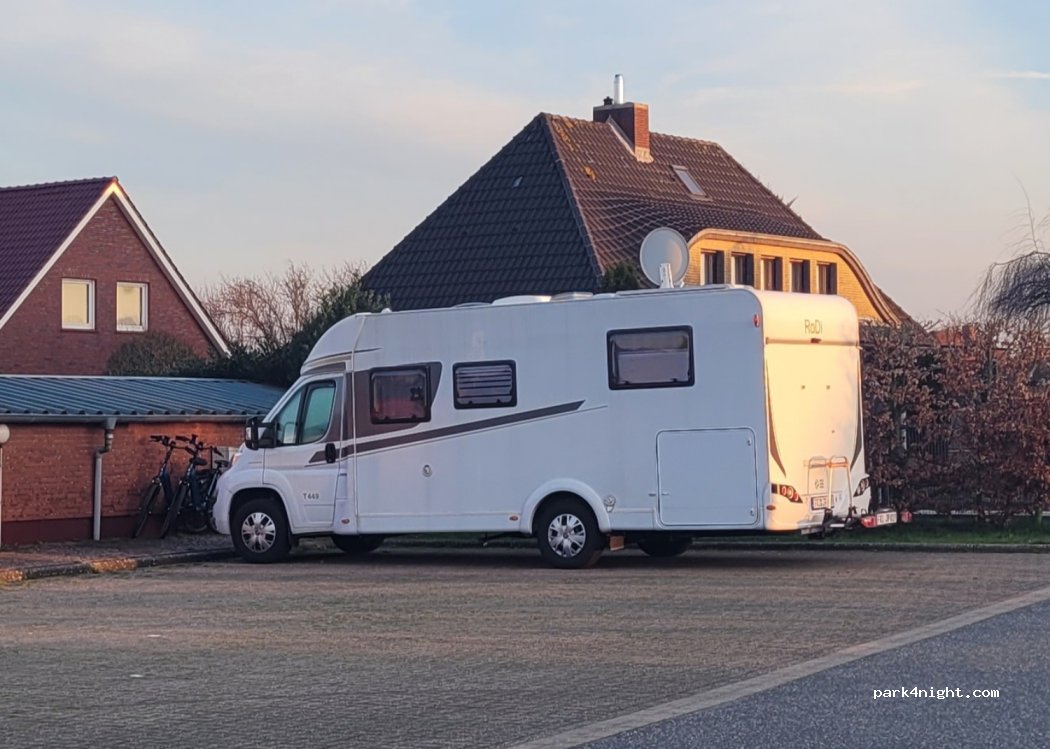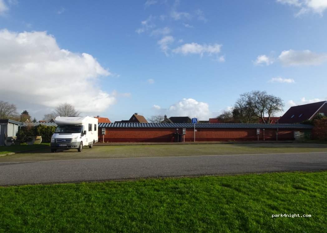 Rustige Camperplaats bij Schutzverein. In het dorp: winkels vlakbij. Pima uitvalsbasis om te fietsen. (12 km naar de kust/ Dornumersiel ). Zwart/grijswater afvoer €1,- . Drinkwater €1,- . Dank aan de Gemeinde en Schutzverein.