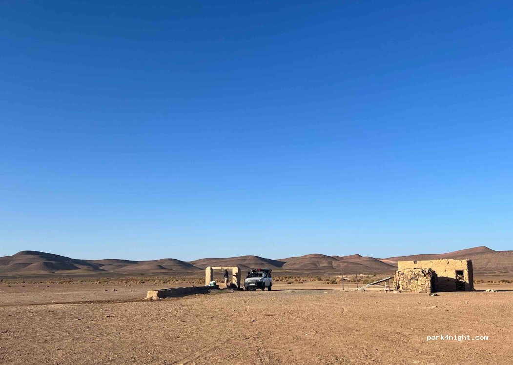 Calme 5/5 Accessibilité 5/5 en 4x4 et Van 4x4 Beauté du site 5/5 Perdu dans une sorte de cratère inhabité et entièrement plat, passez une nuit sans bruit, aucun passage de nuit ( sauf 3-4 dromadaires qui allaient au puis vers 22h en silence ) Une nuit très très calme sous les étoiles.