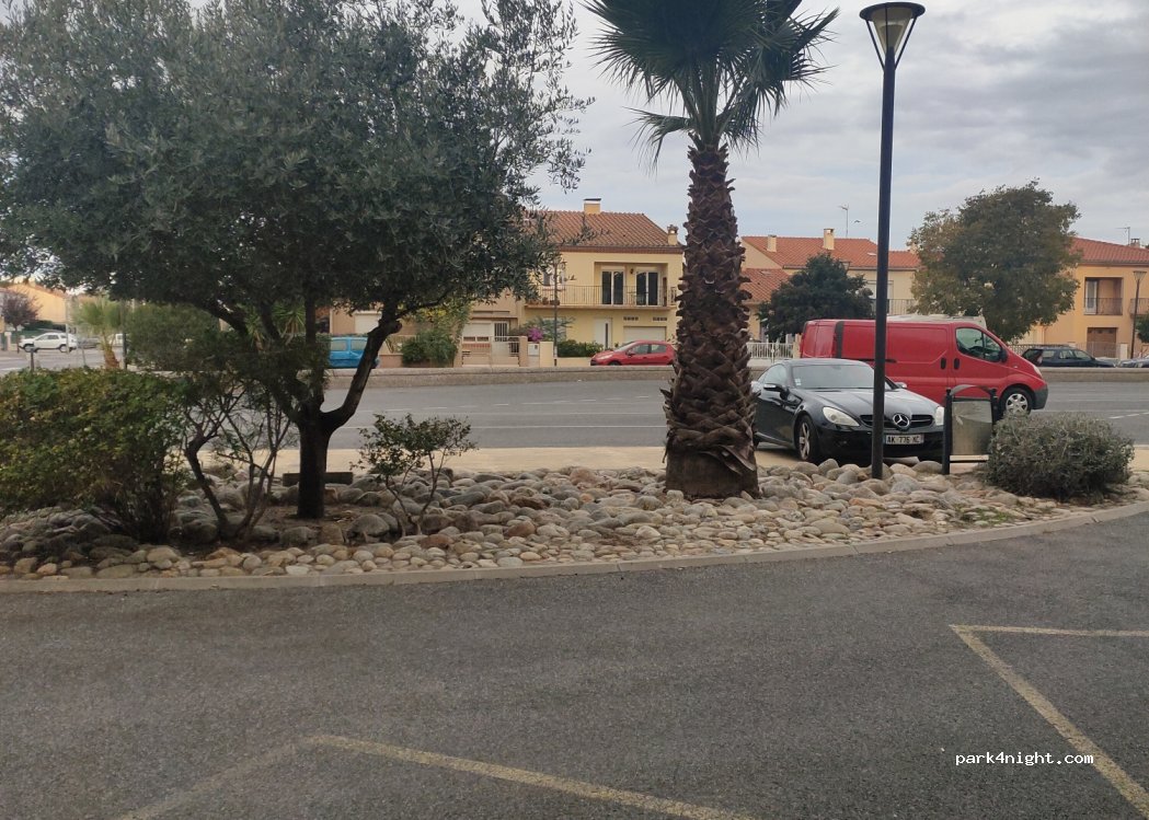 Hors saison, pendant les vacances de Noël, ce spot est parfait. Je me suis garé le long du cours d'eau, les places ne conviennent pas aux plus de 6 m. À 10mns à pied du centre historique d'Elne.