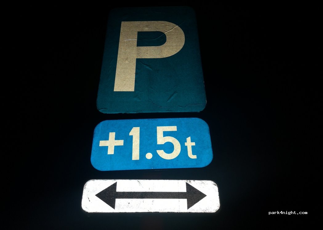 2 Parkplätze mit Schild „P plus 1,5t“ gekennzeichnet