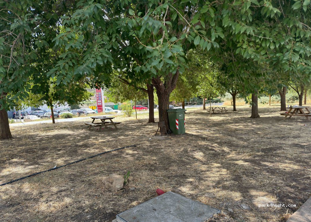 Ce n’est pas vraiment un parking. Nous sommes dans en lotissement en cours d’aménagement. Une partie se termine en impasse et nous pouvons y stationner. Il y a un petit parc avec tables de pique-nique. Les 10 places n’y sont pas…