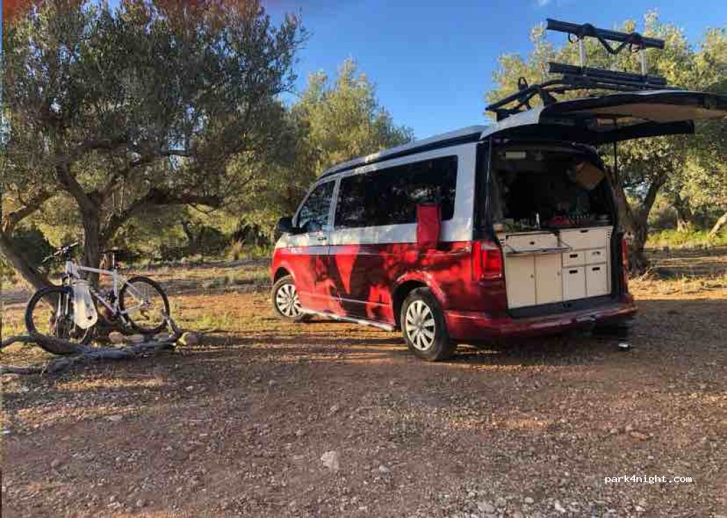 One of the best spots we've stayed at. The owner is really nice, showed us where everything is and explained about the farm. There are so many olive trees. The road there is narrow and crosses all kinds of olive farms, but not too complicated. There's also a small building with a shower, toilet and seeds/olive oil to buy. The building has wifi but the parking spot has almost no signal.