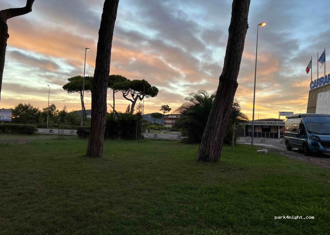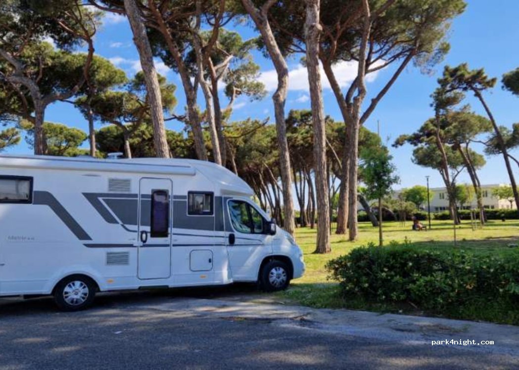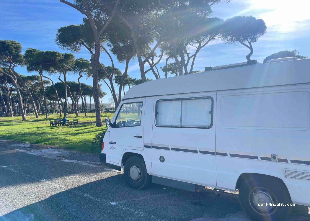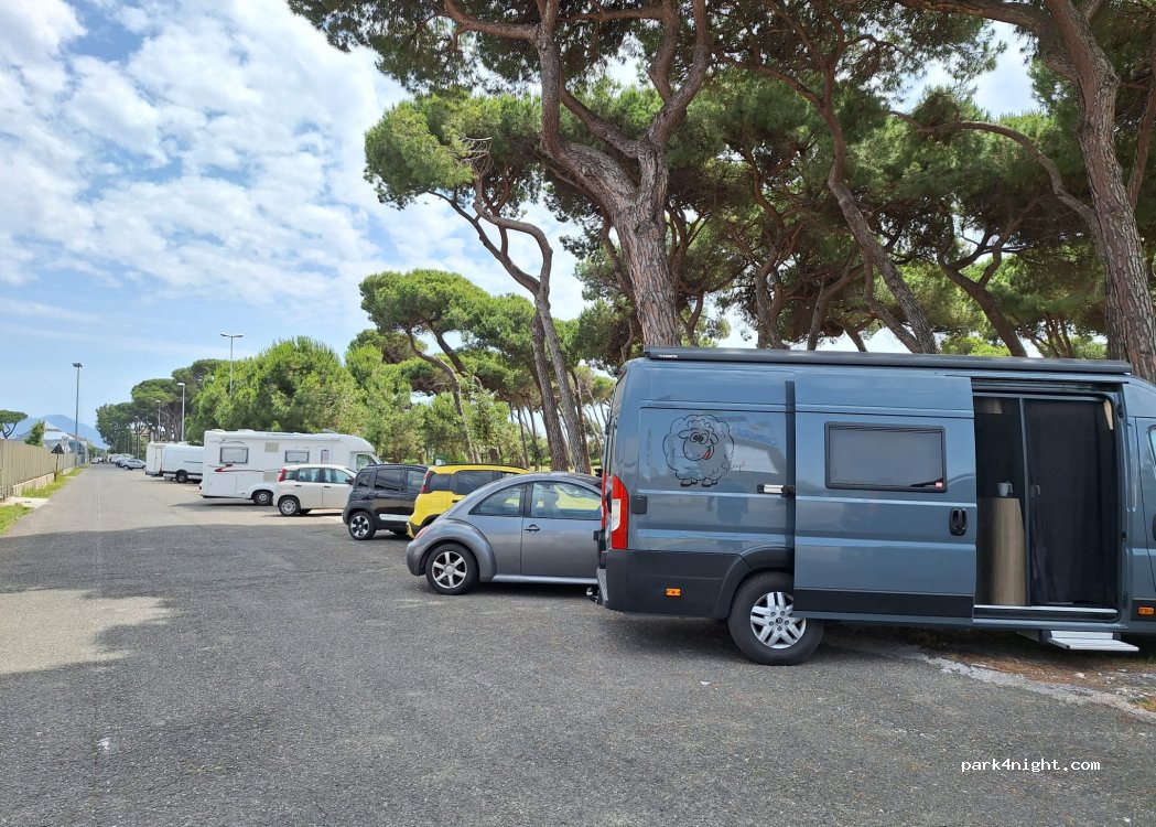 Emplacements le long d'un parc avec airs de pic niques, à l'ombre des pins parasols mais attention de ne pas vous garer en dessous, risque de gouttelettes de résine. Nous y sommes restés une nuit assez calme, proche du bord de mer avec plage pour se baigner à 400 m.